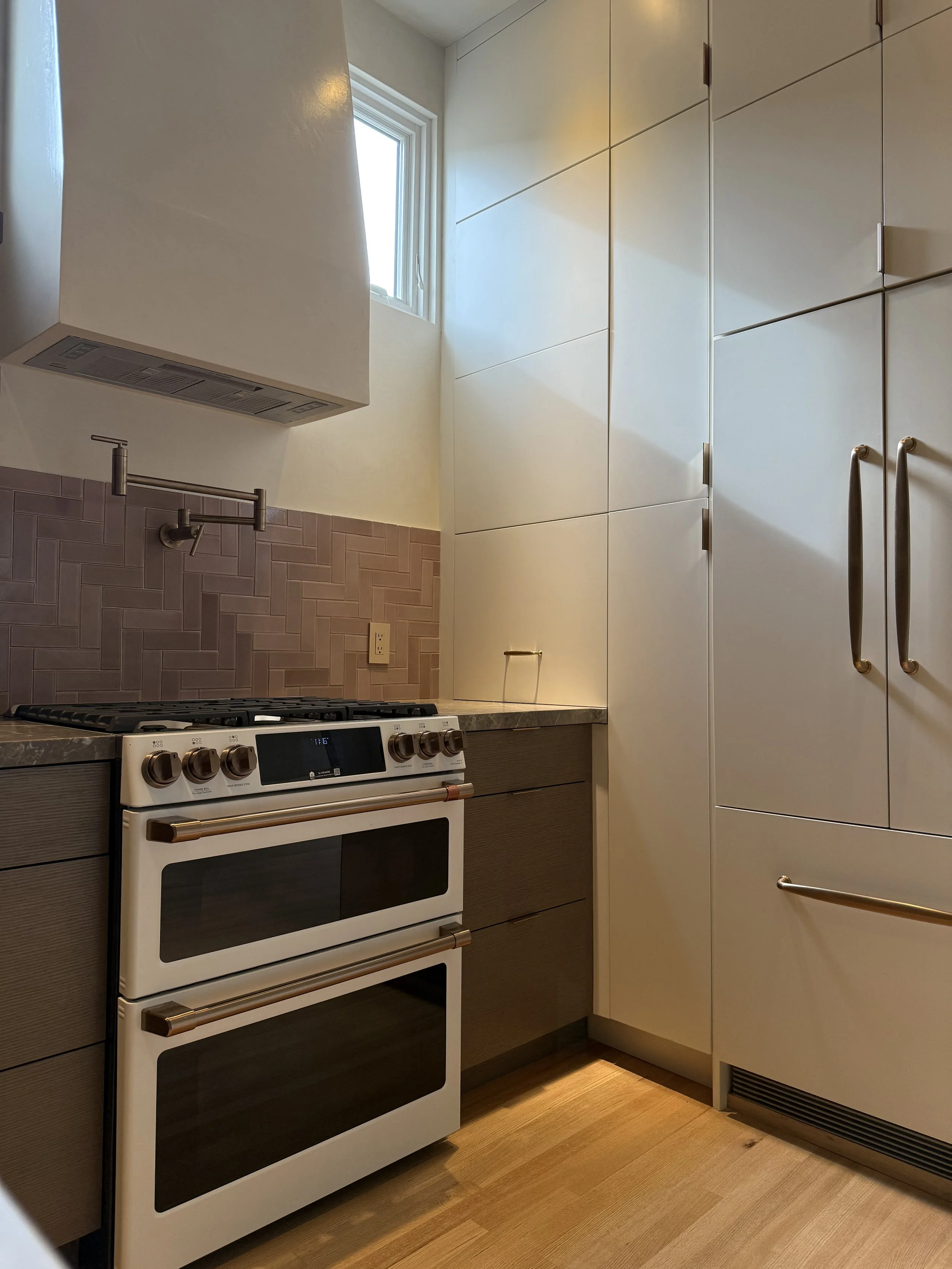 This remodel of a compact kitchen in a Victorian cottage focused on maximizing space, enhancing function, and introducing thoughtful design details within a modest footprint.