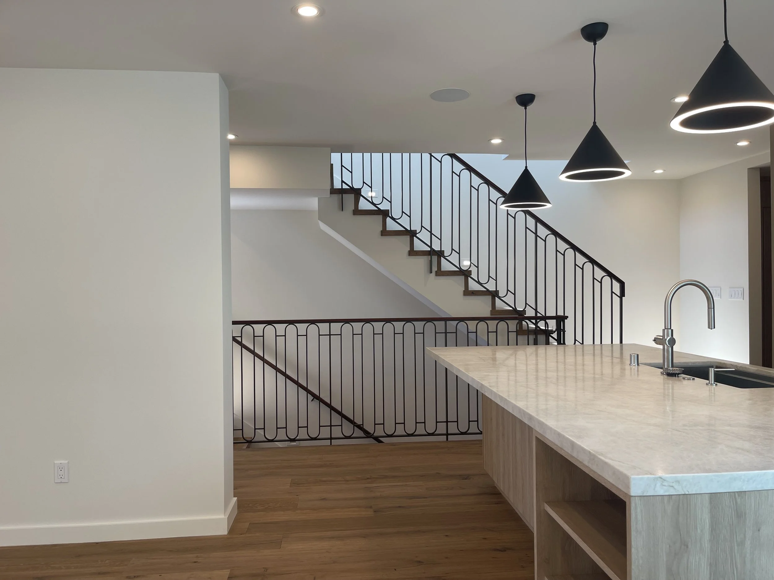 The original house was dark and compartmentalized, with an outdated kitchen, undersized bedrooms, and little connection between levels. The hallway was narrow and dim, and the entire ground floor—a mix of garage and low-ceilinged basement—was severely underutilized. A steep, non-compliant stair made circulation difficult, and the home’s potential felt hidden behind its segmented layout. The design approach was both spatial and structural, centered on reorganizing the flow vertically and horizontally to create clarity and light.